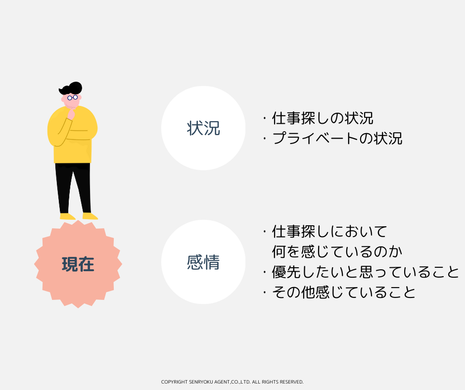 [現在]について理解を深めるために[状況]や[感情]に分けて考えてみましょう!